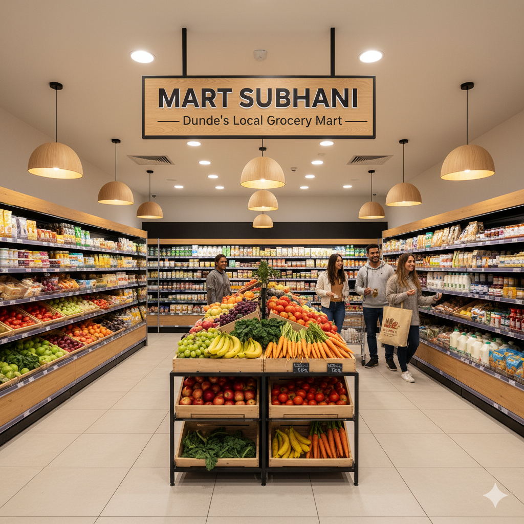 Our mission is to redefine the grocery shopping experience by combining freshness, convenience, and innovation. At Mart Subhani, we are committed to bringing the best of local and everyday essentials to Dundee — making shopping smarter, faster, and more affordable. We aim to create a modern marketplace where quality meets technology, ensuring our customers enjoy efficiency, comfort, and trust in every order.