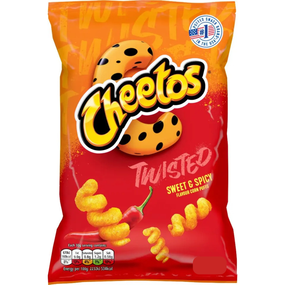 Cheetos Twisted Sweet & Spicy Corn Puffs 70g available with fast Dundee delivery.