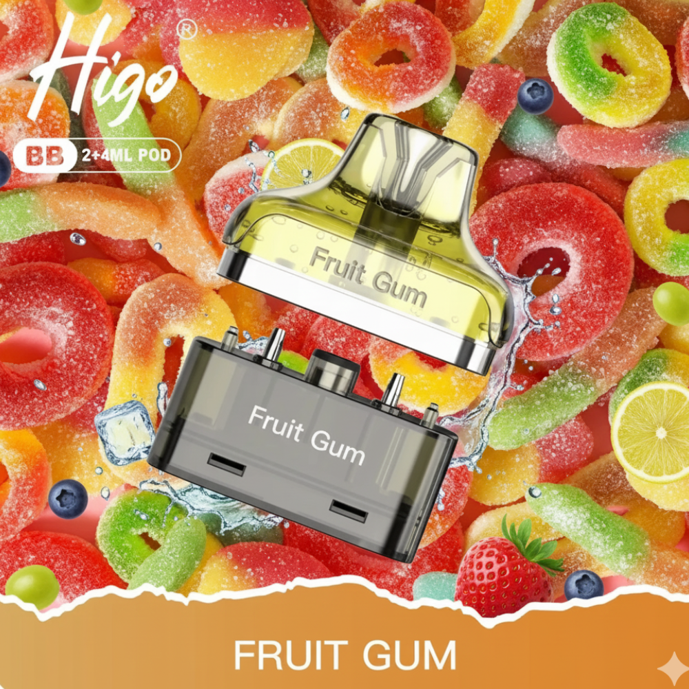 Higo BB 4000 Puffs Pod Kit – Fruit Gum is a fun, fruity, and sweet vape inspired by classic candy gum. With its dual-capacity 2+4ml system and advanced coil technology, this pod kit ensures smooth and consistent flavour delivery for long vaping sessions. Its ergonomic design provides comfort while the built-in battery ensures reliable performance.