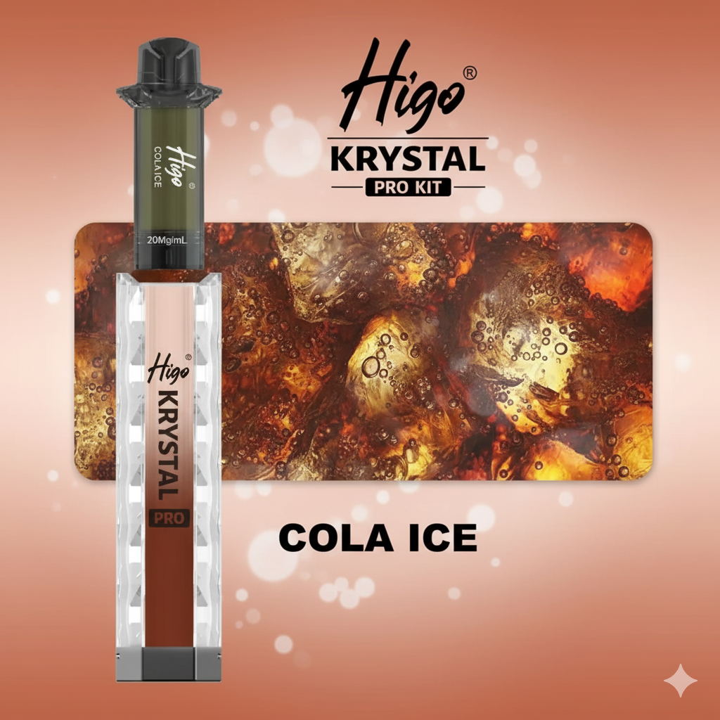 The Higo Krystal Pro Kit 600 Puffs – Cola Ice delivers a sweet and fizzy cola flavour with an icy menthol twist, giving you that nostalgic soda pop experience.