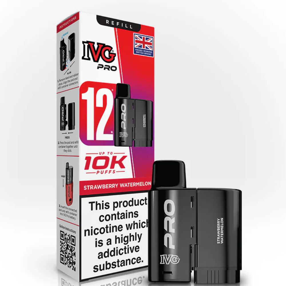 IVG PRO 12 Strawberry Watermelon Refill Pod – juicy watermelon and sweet strawberry. 10000 puffs. Fast local delivery in Dundee.